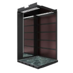 این مدل از کابین آسانسور پکیج داکسون از سنگ مشکی گلکسی برای کف سازی استفاده شده است. که در کنار زیبایی، استحکام مناسبی نیز دارد. در واقع از جمله مهم ترین بخش ها درکابین های استفاده شده در آسانسور پکیج داکسون، همین بخش کفپوش آن می باشد. جهت ساخت سقف و پنل دیواره های این کابین از استیل خش دار دودی و استیل خش دار طلایی استفاده کرده اند. ضمن اینکه پنل ورودی نیز از نوع استیل خش دار دودی می باشد. به منظور افزایش زیبایی محیط داخلی و ایجاد فضایی مناسب و زیبا، جهت ساخت پنل پشت از شیشه بک پینت مشکی استفاده شده است. این شیشه خاصیت آیینه را ندارد اما کارایی و زیبایی خاصی را به کابین های آسانسور پکیج داکسون منتقل می کند.