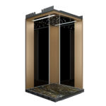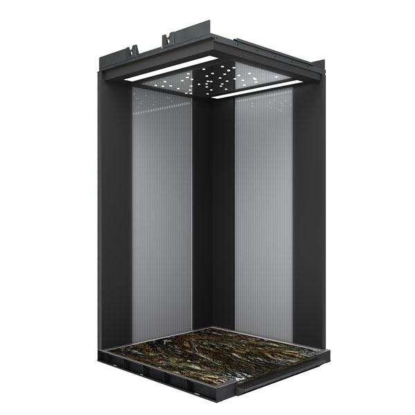 این مدل از کابین مورد استفاده در آسانسور پکیج داکسون ازسنگ تیتانیوس بعنوان کفپوش استفاده میکند که از استحکام و زیبایی مناسبی برخوردار است . جهت ساختن پنل دیواره ها از استیل خشدار شامپاینی و آینه ای دودی استفاده شده است و ضمن اینکه دیواره ورودی از جنس استیل خشدار شامپاینی می باشد . به منظور افزایش زیبایی محیط داخلی و ایجاد فضایی مناسب و زیبا ، جهت ساخت پنل پشت از استیل خشدار شامپاینی و آینه ای دودی استفاده شده است.جهت افزایش زیبایی داخلی آن از نور غیر مستقیم و نقطه ای استفاده شده است که دارای طول عمر بالا و نوردهی مناسب هستند و مصرف برق بسیار پایینی دارند .در ساخت و طراحی این کابین مانند سایر کابین های استفاده شده در آسانسور پکیج داکسون سعی بر این شده تا تمامی ضوابط و استاندارد های مربوط به آسانسور رعایت شود.
