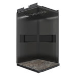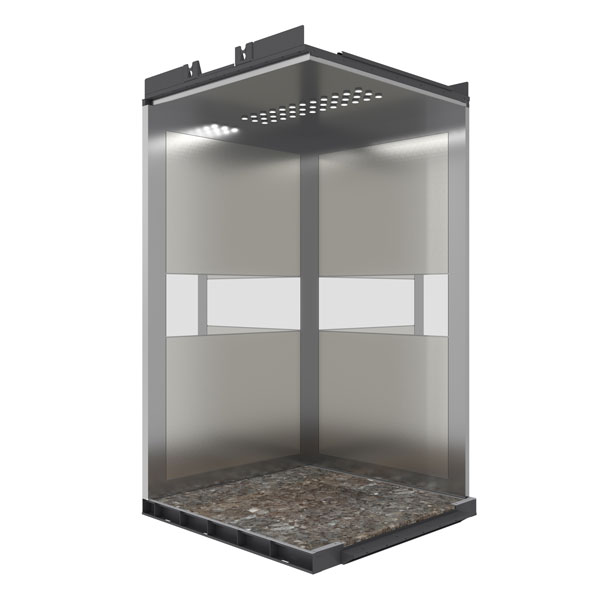 این مدل از کابین مورد استفاده در آسانسور پکیج داکسون ازسنگ آبی نروژ بعنوان کفپوش استفاده میکند که از استحکام و زیبایی مناسبی برخوردار است . جهت ساختن پنل دیواره ها ازاستیل خشدار نقره ای و استیل آینه ای نقره ای استفاده شده است و ضمن اینکه دیواره ورودی از جنس استیل آینه ای نقره ای می باشد . به منظور افزایش زیبایی محیط داخلی و ایجاد فضایی مناسب و زیبا ، جهت ساخت پنل پشت از استیل خشدار نقره ای و استیل آینه ای نقره ای استفاده شده است.پاخور این کابین از جنس استیل آینه ای نقره ای است و جهت افزایش زیبایی داخلی آن از نور مستقیم LED استفاده شده است که دارای طول عمر بالا و نوردهی مناسب هستند و مصرف برق بسیار پایینی دارند.در ساخت و طراحی این کابین مانند سایر کابین های استفاده شده در آسانسور پکیج داکسون سعی بر این شده تا تمامی ضوابط و استاندارد های مربوط به آسانسور رعایت شود.
